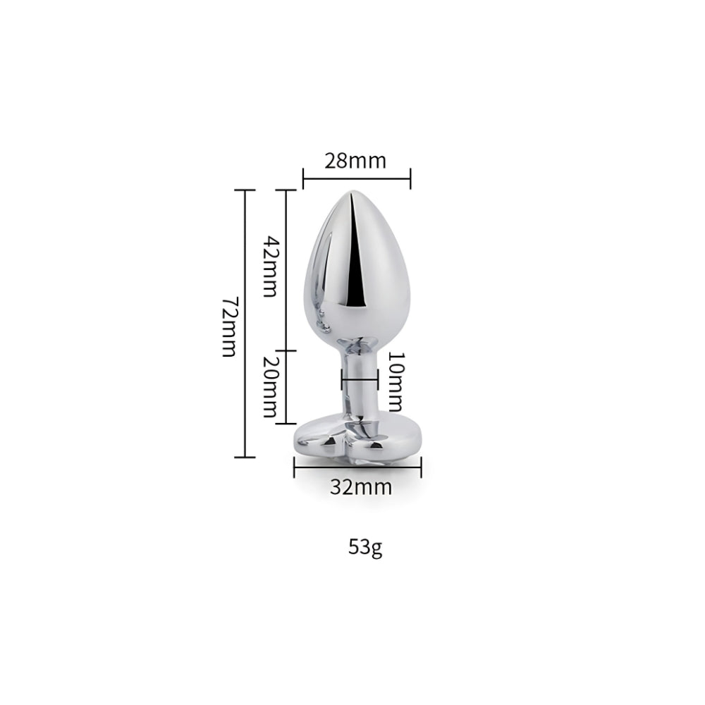 Toosh Heart Shaped Silver Butt Plug with Red Stone Small